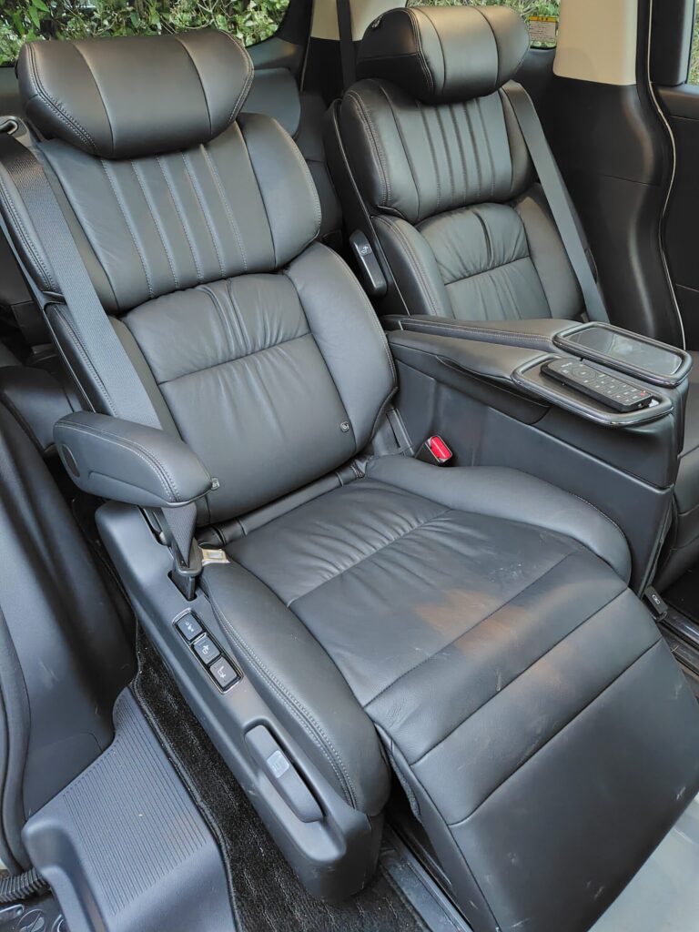 車内装備はいずれも以前の型より良くなっていました。特に2列目の座席は電動で動くオットマン式の座席で、その心地よさは家のソファ以上で、以前の手動式より便利で、子供達でも自由に動かせるので、主に後部座席に座っている子供達は気に入っているようです。